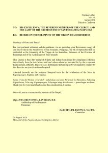 2024 CL 36 – Directive – Decree on the Solemnity of the Virgen de los Remedios 2024 CL 36a Download Here 2024 CL 36b Download Here 2024 CL 36c Download Here