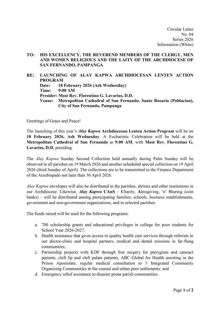The honor was granted through the prayers and wishes of the clergy and the Kapampangan Christian faithful, as well as the petition of the Most Rev. Florentino G. Lavarias, DD, Archbishop of San Fernando. The elevation was granted by the Holy Father through the Dicastery for Divine Worship and the Discipline of the Sacraments.