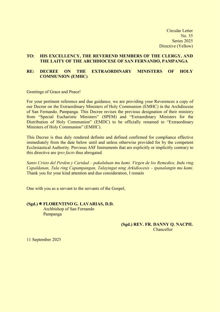 2025 CL 35 – Directive – Extraordinary Ministers of Holy Communion (EMHC)