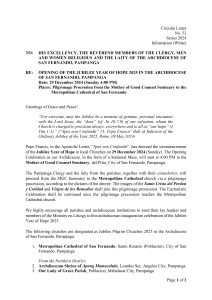 We shall convene 4:00 pm at the Mother of Good Counsel Seminary Chapel for the opening rites of the mass. Subsequently, we will embark on a pilgrimage procession to the Metropolitan Cathedral of San Fernando.