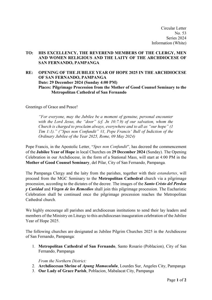 Therefore, it has been decided by the Archbishop that the image of the Santo Cristo del Perdon y Caridad, the crucifix that is well-known and loved by the Kapampangan faithful be the jubilee cross for the Archdiocese of San Fernando.