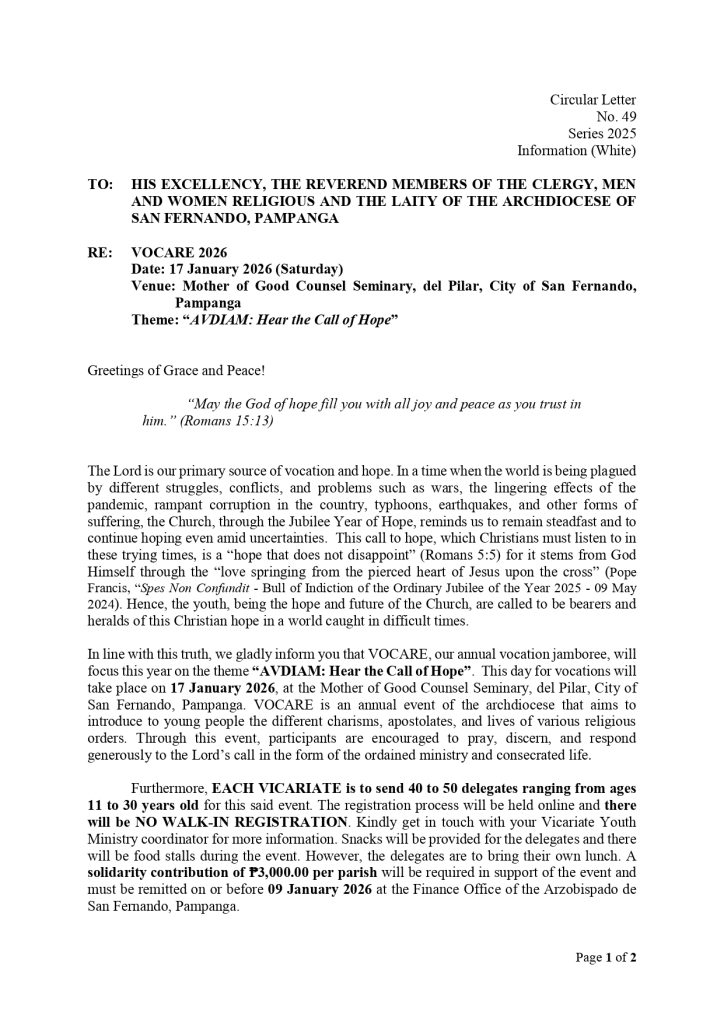 We formally close the 2025 Jubilee Year of Hope on Saturday, December 27, 2025 through a Eucharistic Celebration presided by the Most Reverend Florentino G. Lavarias, D.D. at the Metropolitan Cathedral of San Fernando.