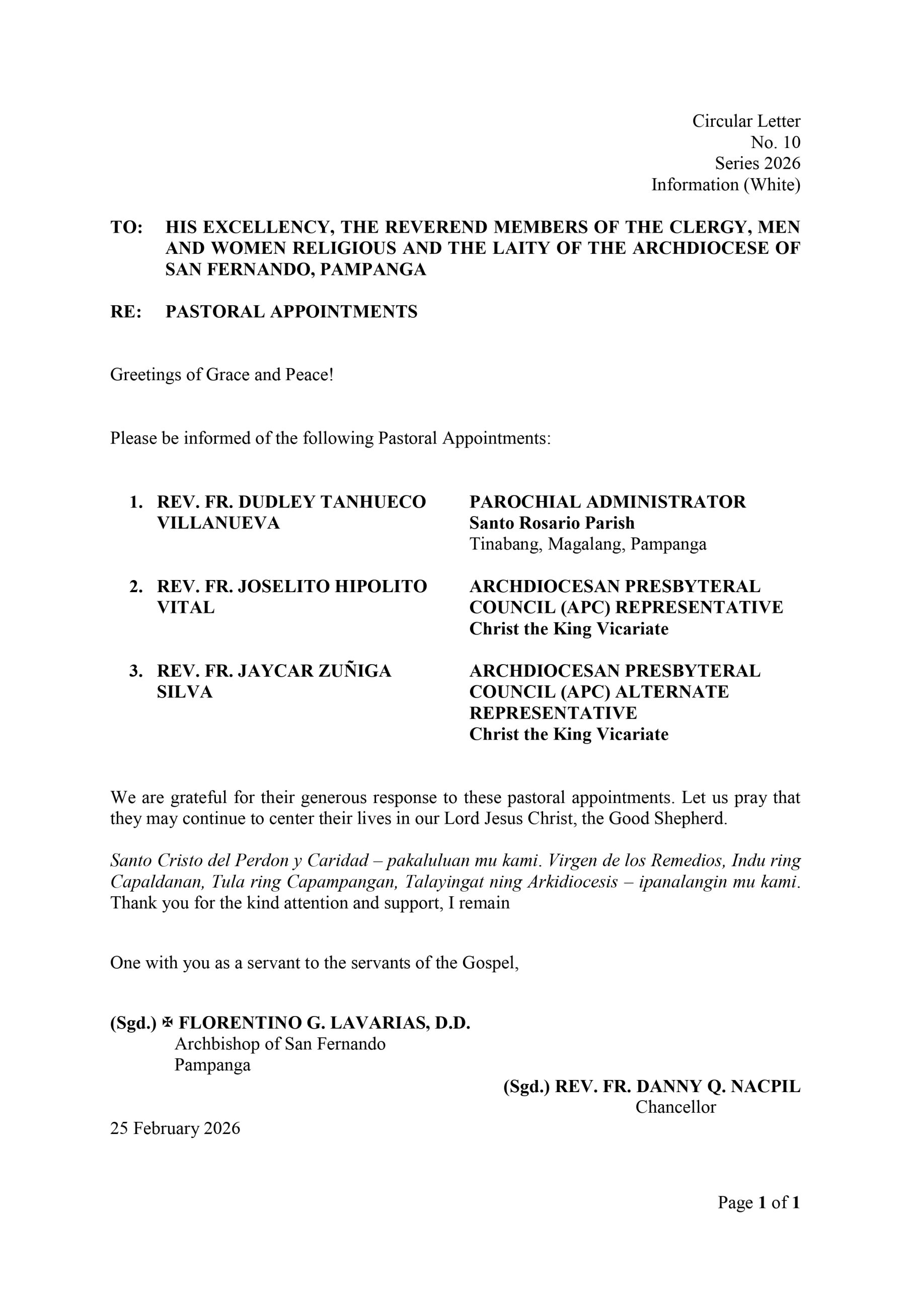 With the firm hope in the promise of the Resurrection, the Archdiocese mourns the passing of +REVEREND FATHER FERNANDO T. DAVID today, April 14, 2026.