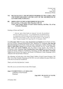 Circular Letter No. 46 S. 2024 – Diaconal Ordinations