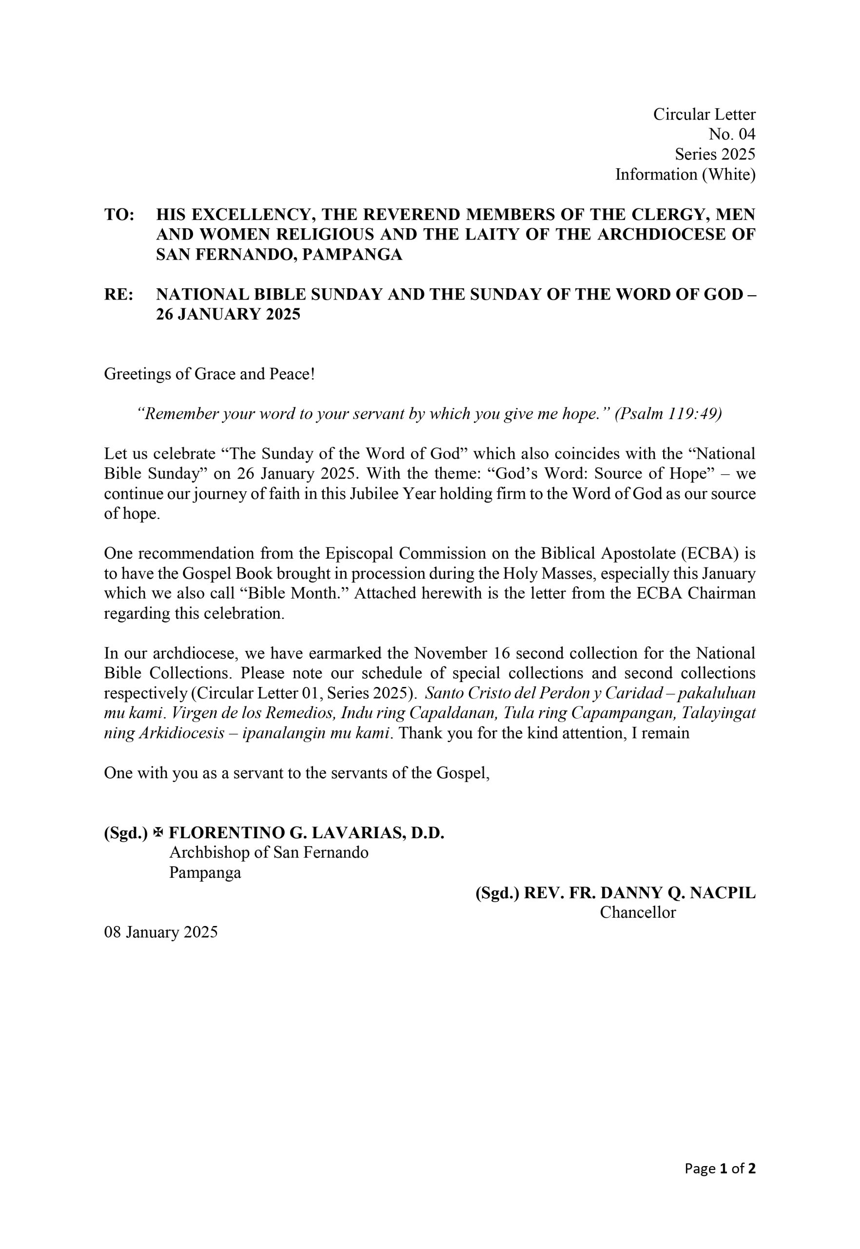 2025 CL 04 – Sunday of the Word of God & National Bible Sunday 2025 CL 04 – Sunday of the Word of God & National Bible Sunday Download Here