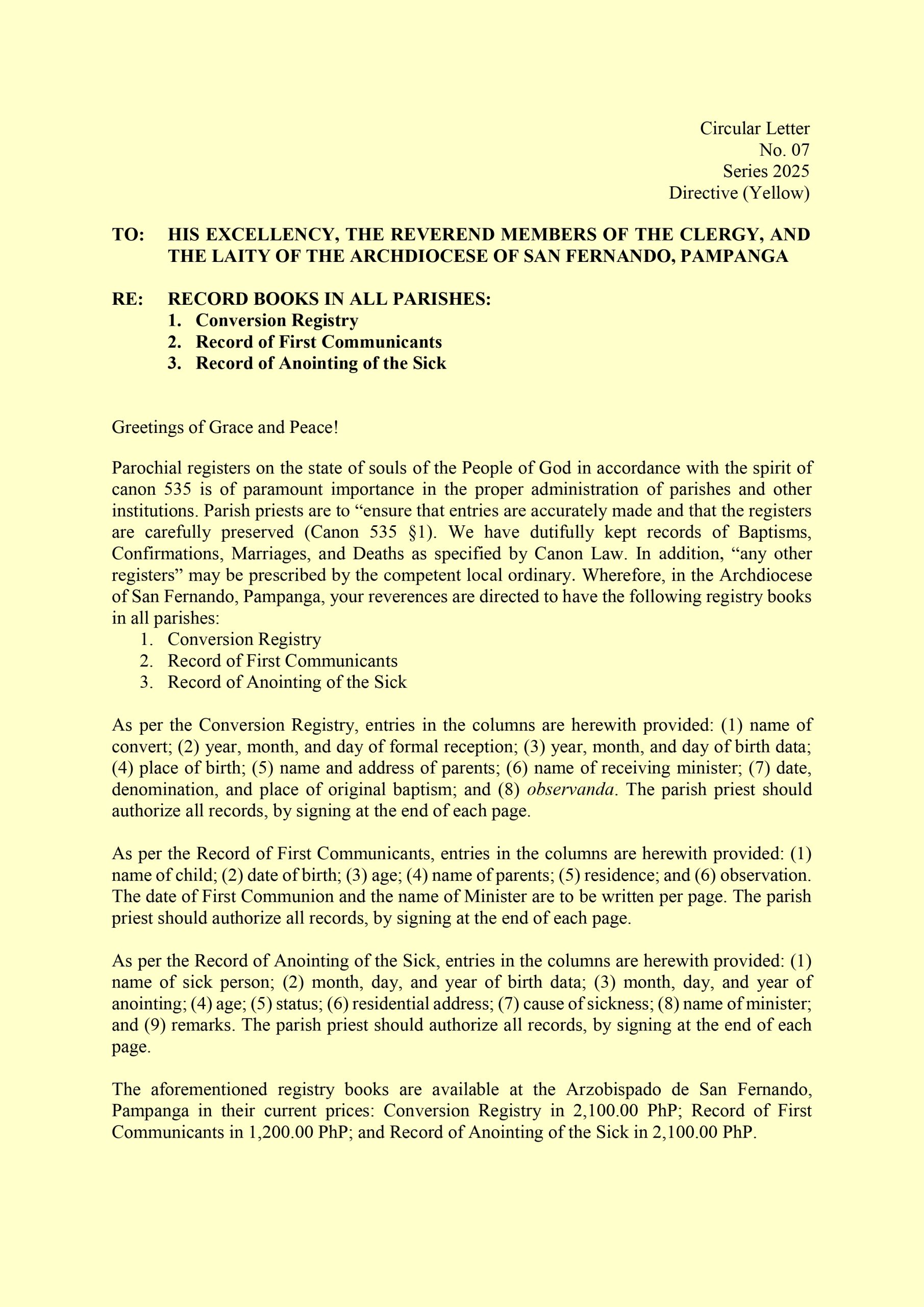 2025 CL 07 – Directive – Record Books in All Parishes